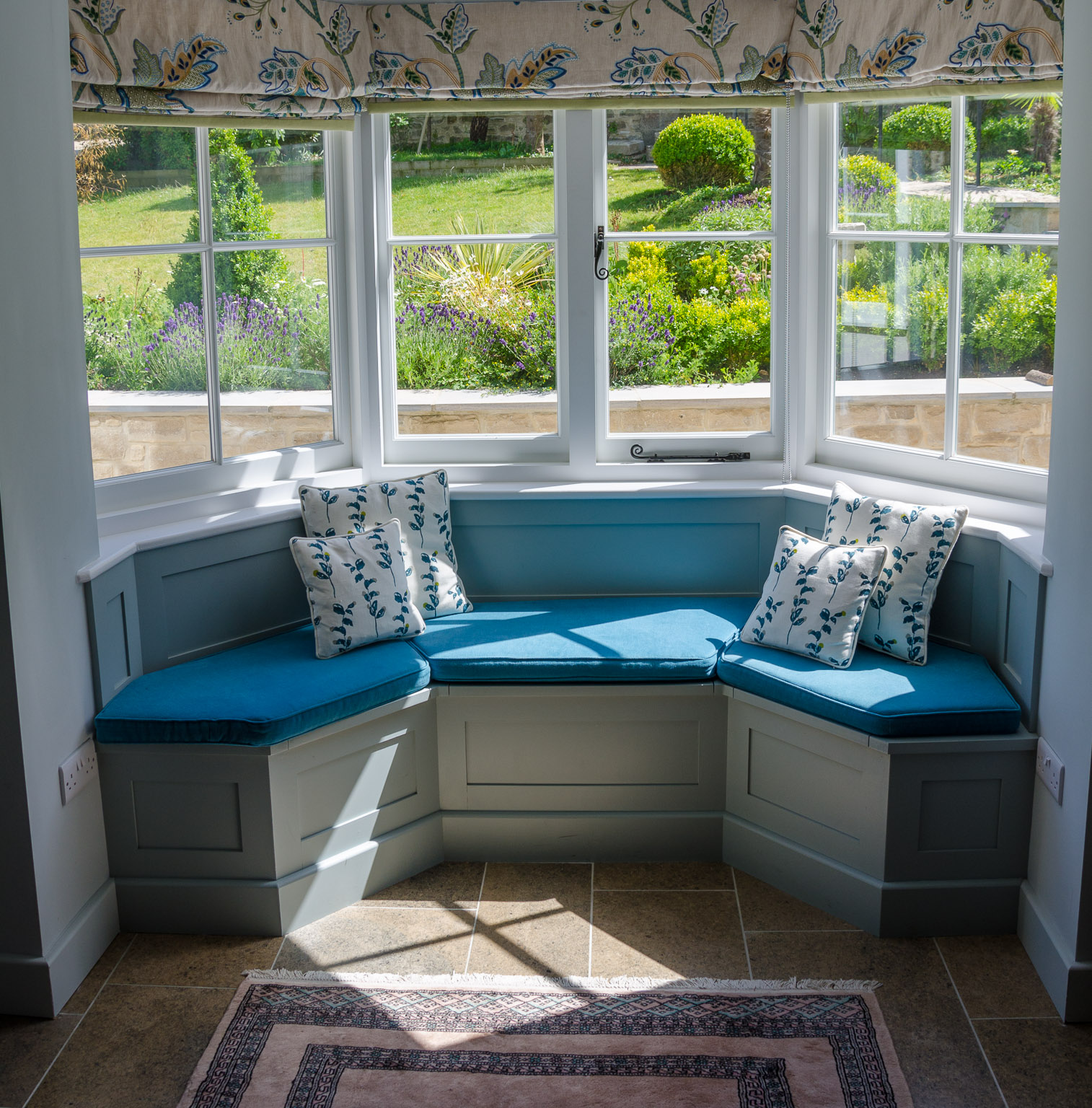 surfaces, stone flooring, seating for six and sea and garden views.